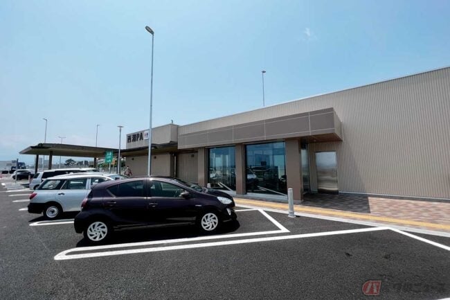 いつもなら一気に小田原方面まで走り切ってしまうのですが、「西湘パーキングエリア」がリニューアルしてから訪れていなかったので立ち寄ってみました。「西湘PA」は、2019年に台風19号の高波にのまれて施設が崩壊しました。災害対策が施され、津波にも強い施設として2023年4月にリニューアルオープン。以前はレストハウスがあって食事もできたのですが、リニューアル後はトイレと休憩スペースのみです。休日にはキッチンカーが出店するそうですが、それ以外は何も無く、少々寂しい感じです。