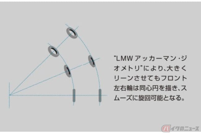 2017年の東京モーターショーで公開され2018年に市販されたNIKENは、ヤマハ独自のLMWテクノロジー(Leaning Multi Wheel=2輪車のように傾斜して旋回する3輪以上の車両の総称)を搭載する大型スポーツモデルです。