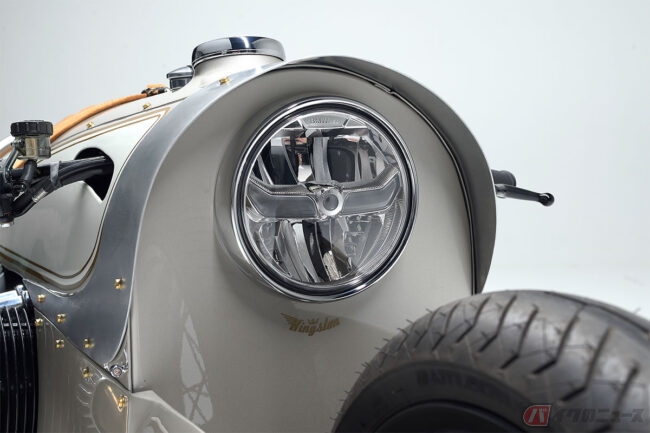また、ヘッドライト、メーター、スイッチユニット、フットレストシステムなどには純正を流用していますが、全体のイメージを損なうこと無くセットアップ。