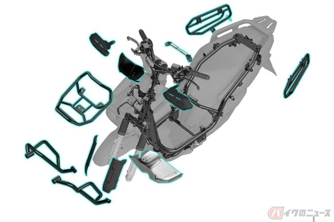 その他、フォグランプ、QC3.0電源なども装備された最新のBW’Sでは、従来モデルと同じく、車体の様々な箇所にロックポイントを設けることで、純正アクセサリーのフロントキャリアやガード類を簡単に後付することが可能となっています。
