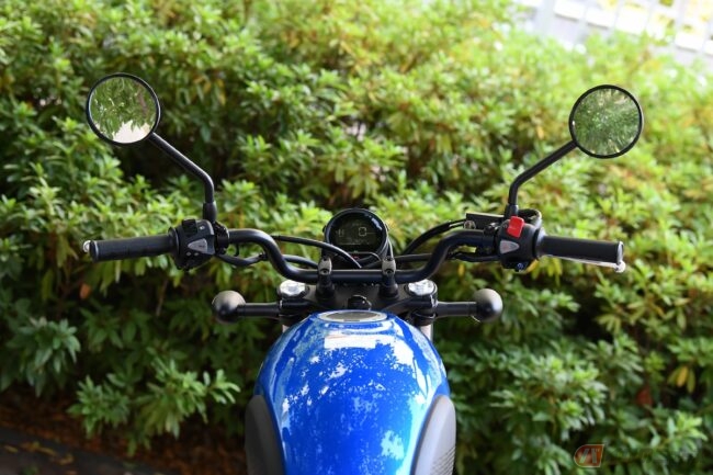 幅が広く、グリップ位置の高いバーハンドルがゆったりとしたライディングポジションをもたらし、気軽さを乗り手に感じさせます。視線が高く、混雑する都会でも目からの情報が得やすいのです。