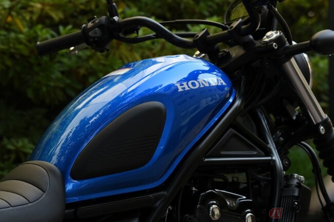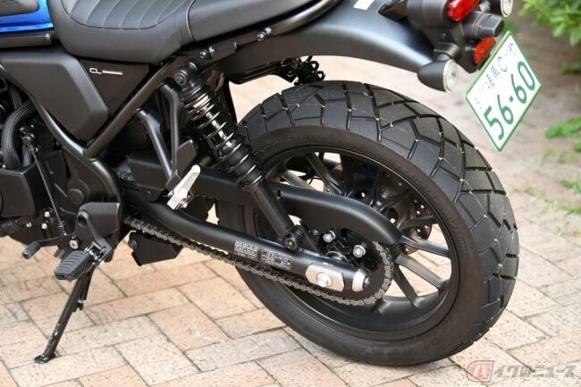 スクランブラースタイルは名ばかりではなく、実際にサスペンションストロークをフロント150mm、リヤ145mmと余裕を持たせていることも見逃せません。前後サスを伸ばした結果、シート高は790mmと若干高め。数値的には『CL250』と変わらず、『レブル500』や『レブル250』とは10cmほど高くなりました。