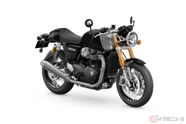 カフェレーサーの王者でありトライアンフのアイコンでもある「スラクストンRS」には、クラシックなジェットブラックはそのままに、新たにジェットブラック&シルバーアイスのツートーンオプションが追加されました。