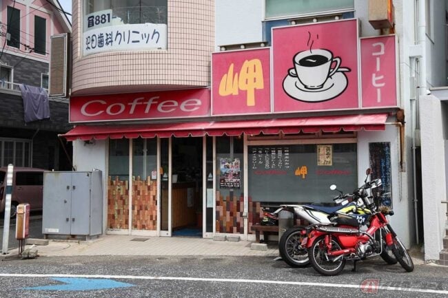 再び県道を走って15分ほどで三崎の街に到着です。ここでノスタルジックな喫茶店「岬」を発見。昭和な雰囲気が素敵です。