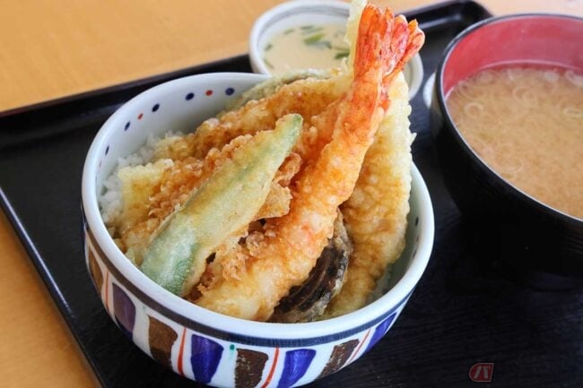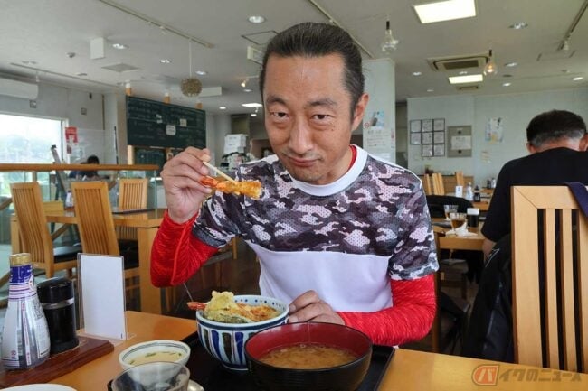 生魚が食べられないZさんは「天丼」をオーダーしています。アジフライ旅の担当者なのに、何故かかたくなにアジフライを食べようとしません。