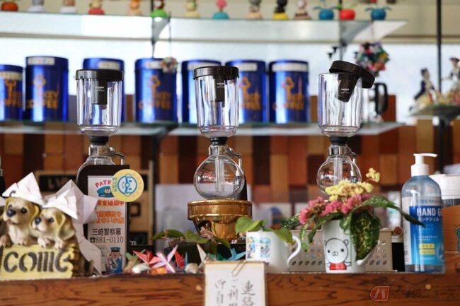 最近のカフェはエスプレッソマシンなどで抽出するのが主流ですが、こちらではサイフォンで時間をかけてコーヒーを淹れています。