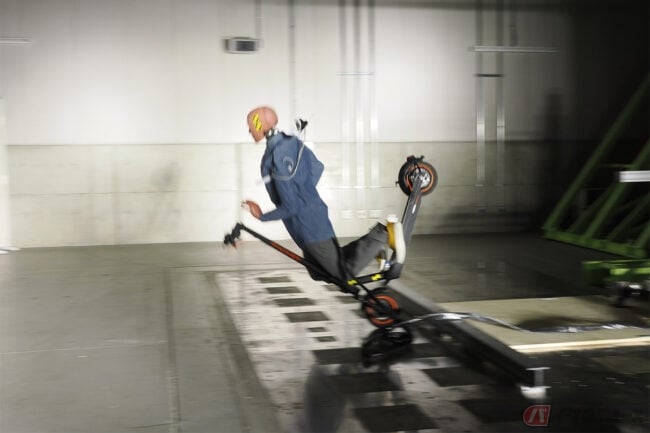 JAFが電動キックボードで衝突した際の頭部にかかる衝撃について実験を実施。