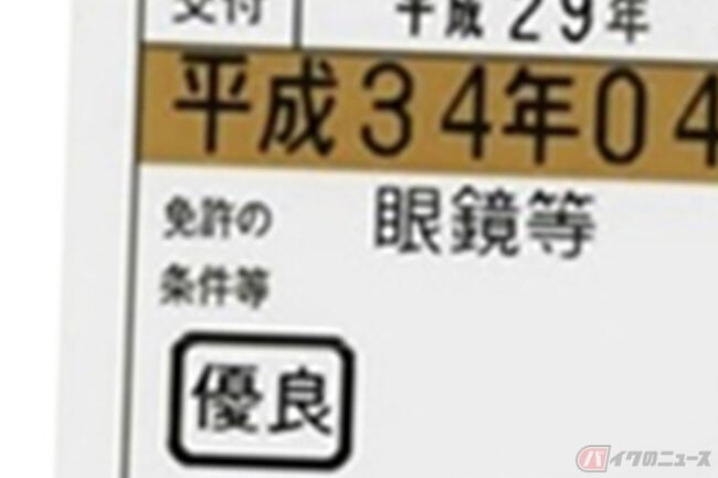 また、「眼鏡等」の条件付きの運転免許であるにもかかわらず、メガネやコンタクトレンズをせずにバイクを運転すると違反。摘発された場合は「免許条件違反」にあたり、違反点数2点と二輪車で6000円、原付で5000円の反則金が科せられます。
