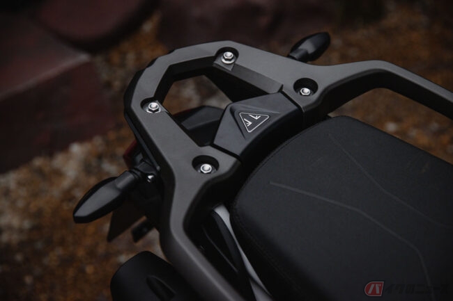 快適なロングランをもたらすグランドツアラー仕様の「GT Pro」をベースにしたTiger 900 GT Aragón Editionにおいては、バハ・アラゴン優勝マシンから受け継いだディテール、ツインカラーのシートデザインも新鮮で、ディアブロレッド、マットファントムブラック、クリスタルホワイトのトリプルカラーを採用して、大胆かつエレガントな雰囲気を醸し出しています。