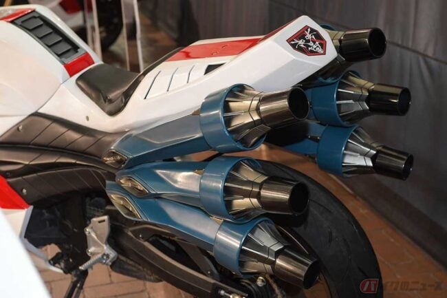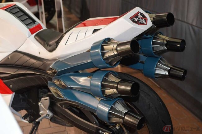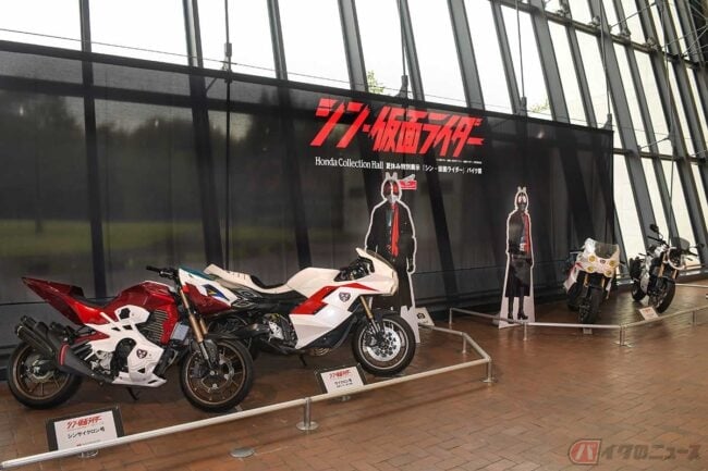 MotoGP日本グランプリが開催される国際サーキット、モビリティリゾートもてぎ(栃木県)内の「ホンダコレクションホール」において、2023年7月15日から9月3日の期間中、映画『シン・仮面ライダー』に登場したバイクが特別展示されています。実車を見てきました。