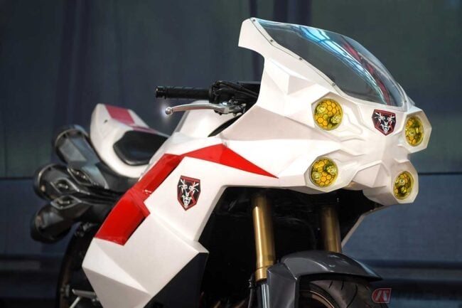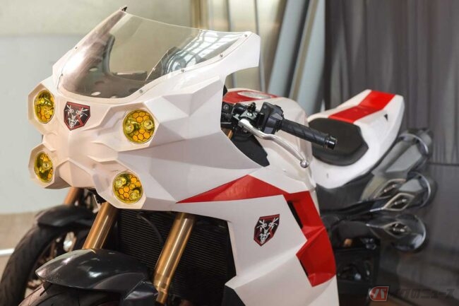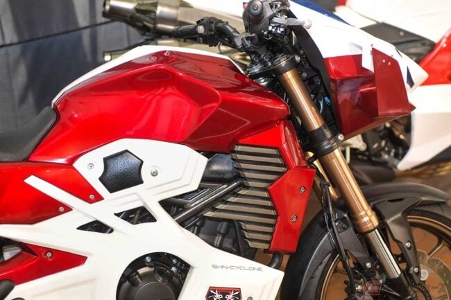 シンサイクロン号のベース車両も「CB250R」ですが、どことなくテレビシリーズで登場したオフロードタイプのサイクロン号(改造型サイクロン号)を連想させます。