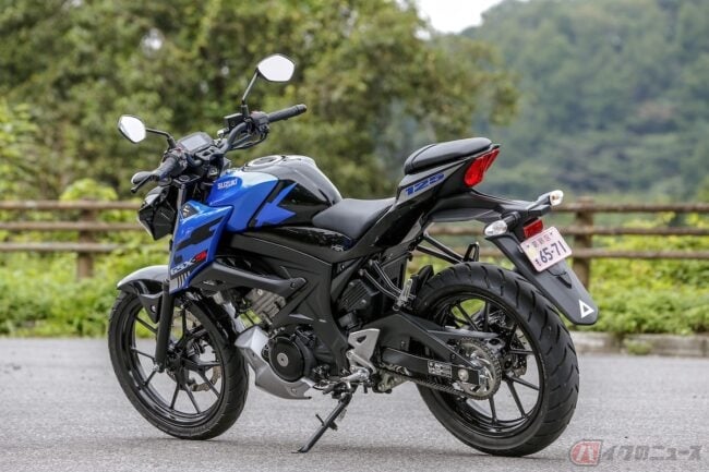 フルカウルスポーツであるスズキ「GSX-R125」のエンジンとコンポートネントを継承し最新のテクノロジーが投入されたGSX-S125は、トリトンブルーメタリック / タイタンブラックとタイタンブラックの二色ともに店頭在庫がありました。急ぎであれば、最短2〜3営業日で納車可能とのことです。