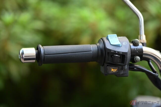 シートはフカフカでお尻に優しいから、路面からの振動は緩和してくれるのに役立ってくれていて、メーターはアナログで燃料系もデジタルで見やすいし、ウィンカーが中ボタンでちゃんと消えるのはストレスフリー。右のスイッチボックスにはライトが消せるスイッチが標準装備されていて、ここにもレトロさを感じ取れるよね。ただヘッドライト点灯は、平成10年4月以降製造のバイクには法律で義務化されているから乗る時は注意しよう!