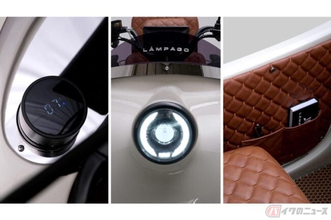 スペイン語で稲妻を意味するLampagoは、ヴィンテージデザインを採用した後ろ二輪の電動モデルです。