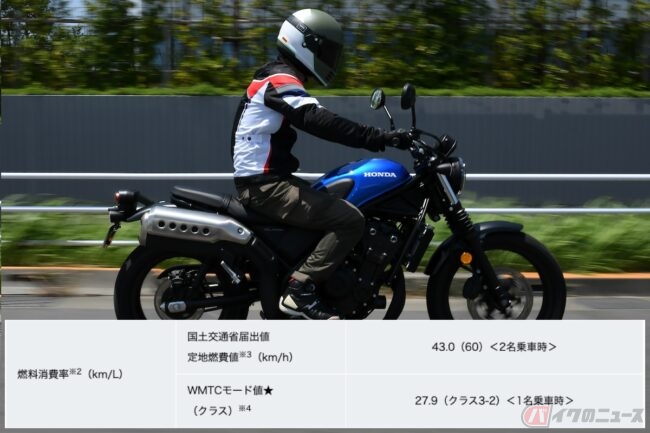 また「燃料消費率」は、ガソリン1Lでどれだけの距離を走れるかを表した数値です。この数値が大きくなるほど、燃費の良いバイクといえるでしょう。