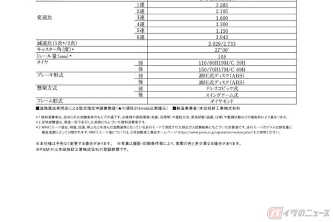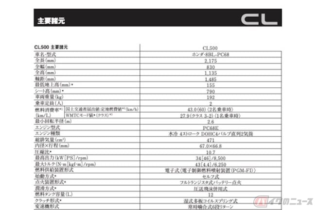 実際にバイクに試乗しなくても、スペック表を見るだけで性能やサイズ感などをある程度イメージすることが可能です。