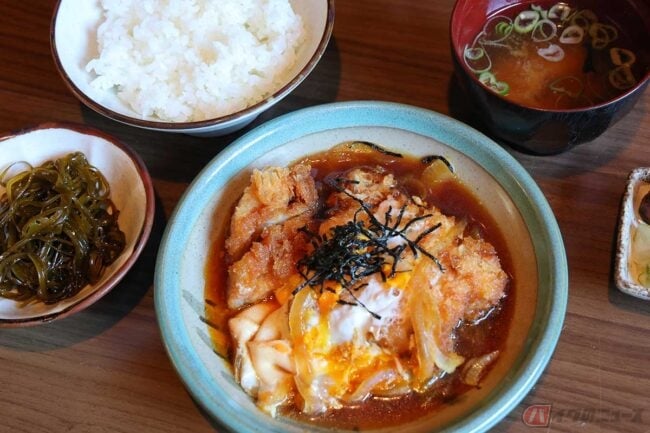 「アジフライ定食」は、半身のアジフライが3枚とキャベツ、キュウリ、トマトが皿に乗っています。小鉢とご飯、みそ汁、漬物で定食です。「ミックス定食」はヒレカツ、アジフライ、イカフライが1枚づつ。アジフライを食べないアジフライ連載担当編集Zさんの「カツ煮定食」は出汁が美味しそうです。