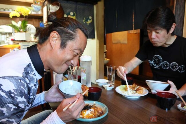 早朝から撮影していた3人は空腹マックスです。筆者とZさんが揃っている、ということは、“美味しいアジフライを求めて走る”ことが必然となり、目星をつけていた店へ向かいます。