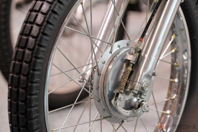 ホイール径はフルサイズのフロント21インチ、リア18インチで、サスペンションのストロークも長めに設定されていました。また前後フェンダーは軽く柔軟性のある樹脂素材でした。