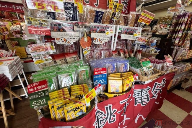 食事をしながら気になっていたのは、「がんばれ! 銚子電鉄」のPOPです。ショッピングコーナーだけでなく、フードコートでも相当なPRぶりです。「名古屋で銚子電鉄!?」と不思議に思いましたが、経営危機にある千葉県の銚子電鉄(大正12年運行)を応援しようと、「銚子電鉄のぬれ煎餅」の売場を設けたそうです。