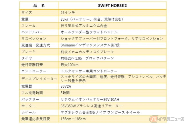 最大100kmのアシスト走行が可能なSWIFT HORSE 2の価格(消費税10%込)は16万4000円(定価)で、Makuakeでは予約台数に応じた値引き価格で購入可能です。