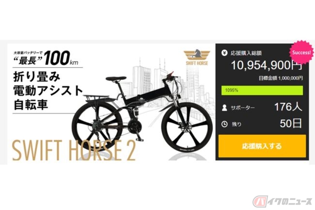 群馬に拠点を置く福田国際株式会社は、応援購入サービス「Makuake」で新型のスポーツ電動アシスト自転車「SWIFT HORSE 2」の販売を開始しました。
