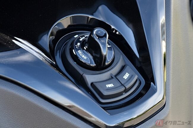 そしてさらによいポイントは、キーレスなところ! キーのオンオフはもちろんだけれど、さらによいなと思ったのは、給油口やシートまでオープンできちゃうところ。