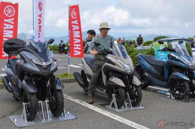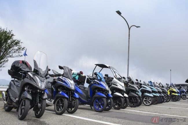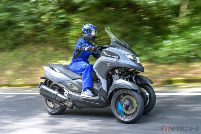 トリシティシリーズは、フロント2輪、リア1輪という独自のLMW(リー二ング・マルチ・ホイール)機構を搭載したユニークな3輪スクーター。2014年に125ccが販売開始され、その後、155cc、300ccがラインナップしています。