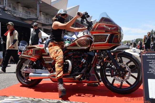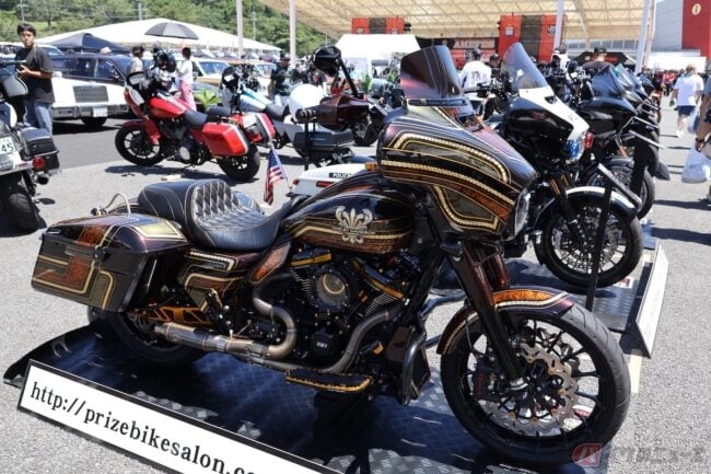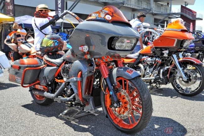 コンテストでは、バガー部門は岐阜のアイアンパドックが製作した2015年式FLTRXSロードグライドスペシャルが1位、2021年式FLTRXSロードグライドスペシャルが2位。広島県のジャルマカスタム製作のFLHRロードキングが3位を獲得しました。