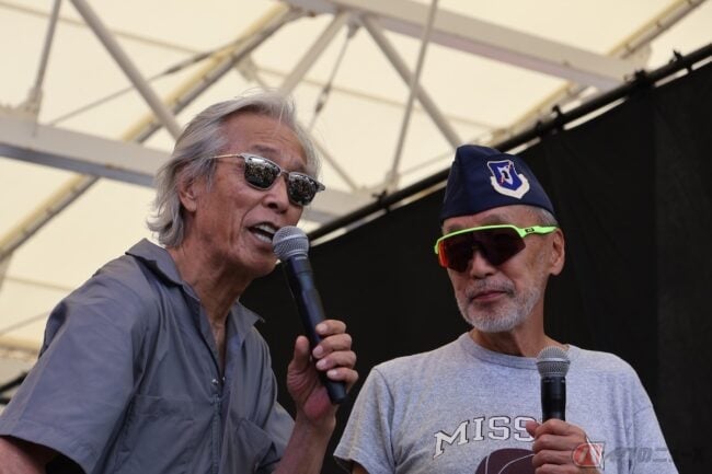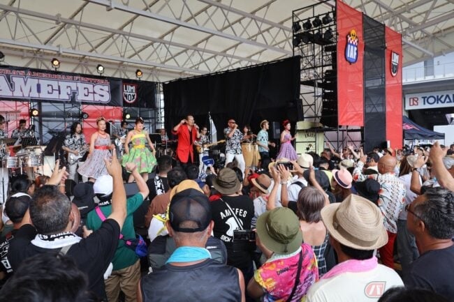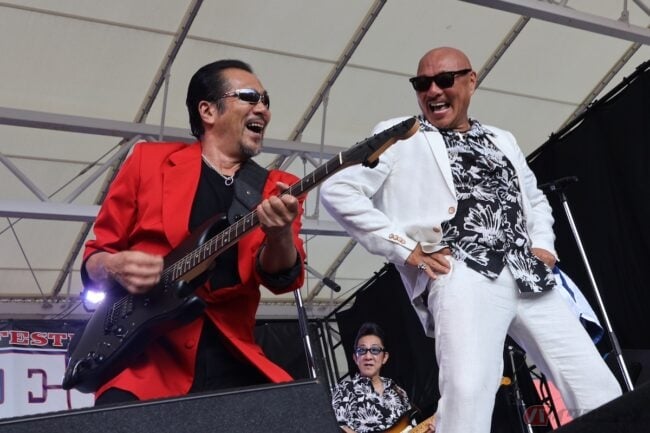 そしてイベントのクライマックスには、メインステージでイクラさん率いるIKURA & FUNKEE STYLEライブ! ゲストに横浜銀蝿の翔さんを迎え、つっぱりハイスクールロックンロールも披露されました。昭和世代はもちろん、TVドラマのカバー曲として知った若い世代の観客にも大盛況。会場は大きな声援と拍手に包まれました。