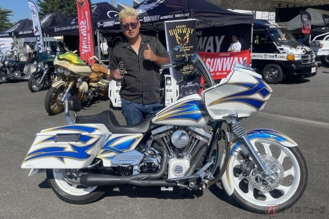 ちなみにグッドルッキング賞は愛知県のガレージサンウエイ製作に2015年式FLHTCUTGトライグライドウルトラが1位。香川県のブルーブル製作の2021年式FLRTトライクフリーウィーラーが2位を獲得しました。