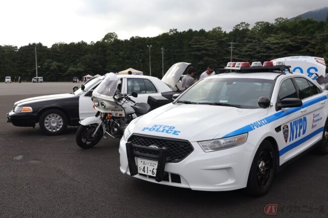 イベント広場のメインステージ前ではカーショーとモーターサイクルショーが開催。車エリアではスポーツカー、SUV、トラック、バンなど、新旧さまざまなジャンルが勢揃い。