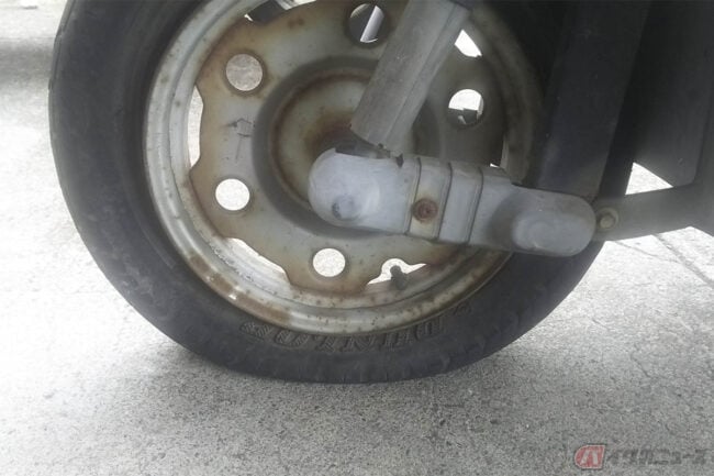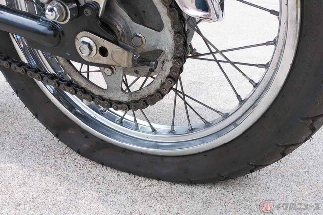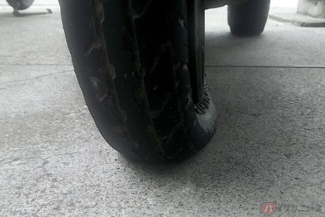 先程、パンクしたら速やかに減速するなどと紹介しましたが、チューブレスタイヤの場合は、すぐに気が付くことはかなり難しいというのが実際のところ。