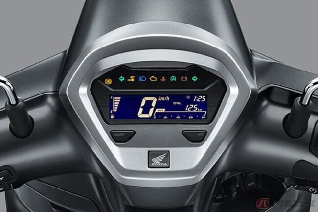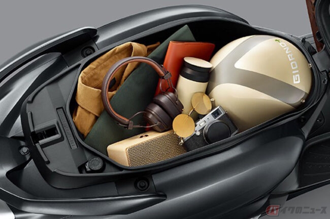 新型フレームを採用するジョルノ+では、USB電源付きのフロントポケットや30Lのシート下スペース、LEDの灯火類、液晶メーターを採用。