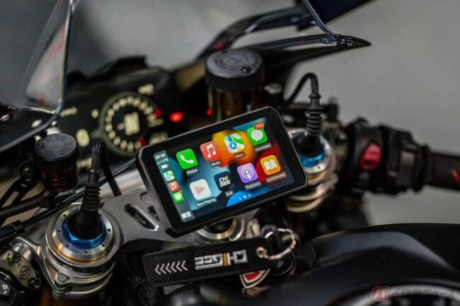 そうした不具合を改称することができるAIO-5 Liteは、Wi-FiとBluetoothでスマートフォンと接続すすことで、スマートフォンのナビ機能、通話、メッセージ、音楽などを使うことができるバイク用ディスプレイオーディオで、タッチパネルで操作可能。