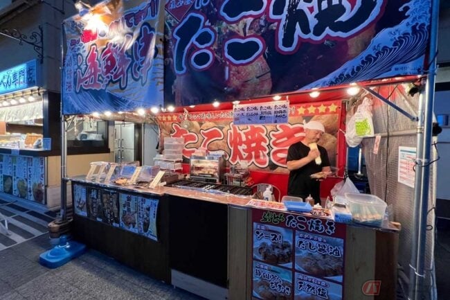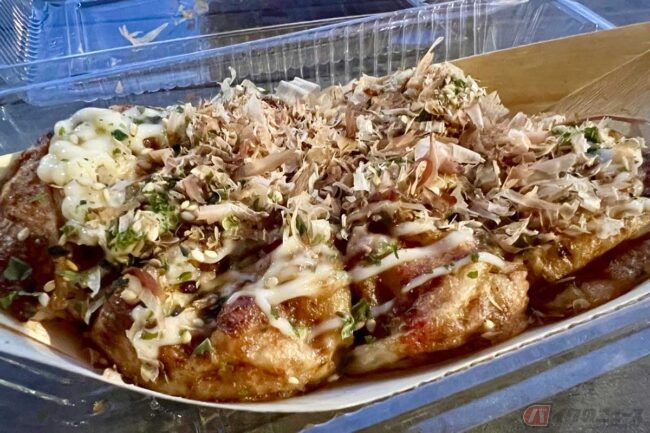 たこ焼きで少しでも空腹を満たそうと思い、店の方に写真撮影の許可をいただこうと話しかけると、穏やかに笑いながら「同業者の方ですか?」と逆に質問されました。同業者とは飲食業のことでしょう。想定外の問いに一瞬戸惑いましたが、PAやSAのグルメ記事の取材であることを伝えると快諾いただけました。
