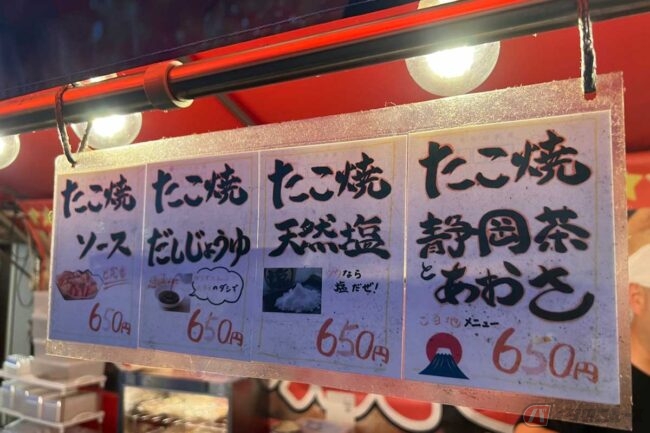 さて実食です。まずたこ焼きは、柔らかくて口の中でとろける食感がたまりません。まさに「ふわとろ」です。静岡茶とあおさの風味もあり、コッテリ過ぎず、じつに食べやすい味であっという間に6個完食。ほかにも、ど定番と謳う「ソース」をはじめ、「だし醤油」や「天然塩」などもあり、機会があればリピートしたいと思います。