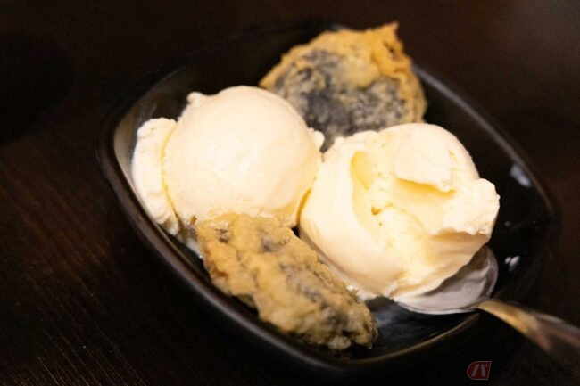 ほかにもいくつかの料理を食べて、デザートはオレオの天ぷらを添えたアイスクリームでした。既にビールを飲んでいた筆者はパスしましたが、美味しかったそうです。