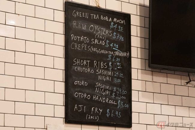 店内に入って黒板に書かれたメニューを見て納得しました。コイソさんの奥さんであるエリンさんが「AJI FRY(アジフライ)」のある店を探してくれたのでした。