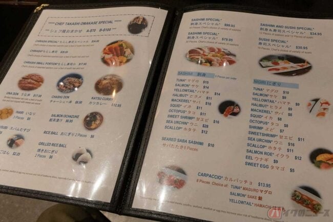 「TAKUMI IZAKAYA」では、ホテルなどの寿司レストランでチーフシェフを務めた中村さんという方がオーナーシェフです。アメリカ人向けの寿司ではありますが、日本人も美味しいと思える料理ばかりでした。