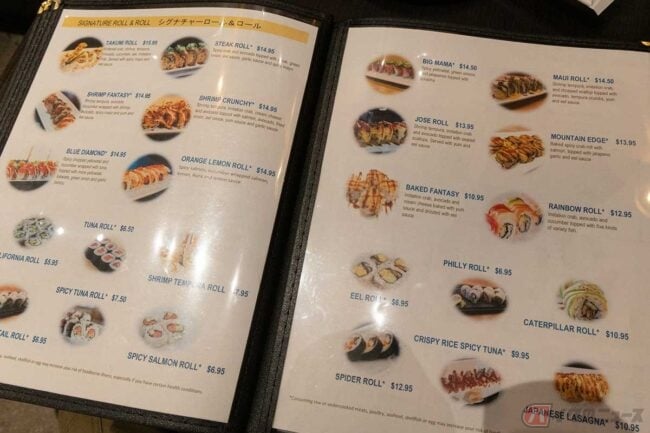 ラスベガスは、チャイナタウン近辺をはじめ多くのIZAKAYAがあります。また寿司屋も多く「TAKUMI IZAKAYA」でも寿司のメニューが豊富でした。しかも日本では見たこともないような巻物がいろいろあります。筆者は「AJI FRY」のみオーダーし、後はコイソさんファミリーにお任せしました。