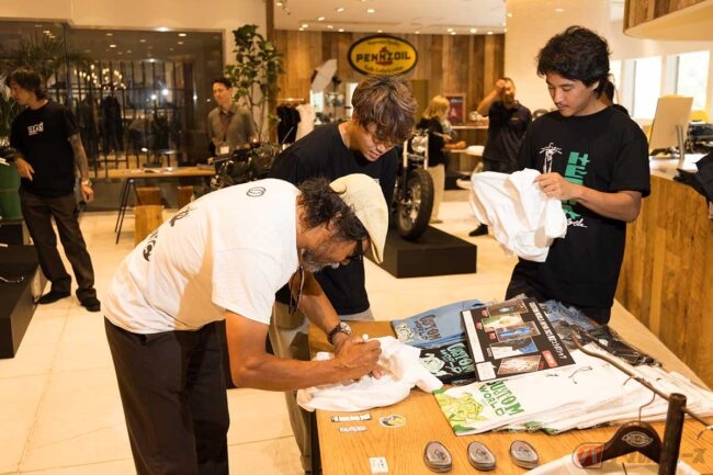 さらにはHCSで2006年、2007年と連覇を果たし、海外にも顧客をかかえる神奈川のヒデモーターサイクルの富樫秀哉氏や過去のHCSでベストヨーロピアンを獲得するだけにとどまらず“レジェンド・オブ・クラシックス”などのレースでも活躍する山梨の46ワークスの中嶋志朗氏、そして同じく過去のHCSでベストヨーロピアンやベストドメスティック(国産バイク)のアワードを獲得した東京のウェッジモーターサイクルの二平隆司氏といったこれまでの面々に加え、米国のバンド、“レッドホットチリペッパーズ”のメンバー、Fleaを顧客に持ち、海外のショーイベントにもゲスト招聘される京都のラックモーターサイクルの杉原雅之氏という面々がそれぞれカスタムマシンを持ちより、“パセーラ”にて1ヵ月間の作品展示を行っているのですが、これはともすれば日本のカスタムファンよりも海外のファンにとって垂涎の催しといえるような気がします。