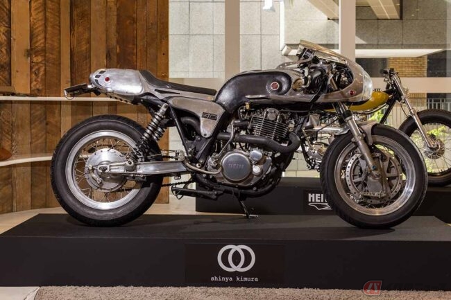 2018年のHCSで海外ゲストとして来日した際に披露したYAMAHA SRをベースにしたカスタム、“Crystal Trophy”を展示しているのですが、世界のセレブを魅了するマシンを生で観るまたとないチャンスとなっています。