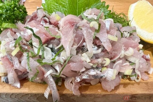 正直言えば、成田市は海に面していない地域なので海鮮メニューにはあまり期待していませんでした。しかし出来上がってきた「アジたたき定食」は想像を超える美味さ! 新鮮なアジでまろやかな食感、ご飯と共にいくらでも食べられそうです。途中からレモンをかけていただくと、爽やか系に味変もできるのです。