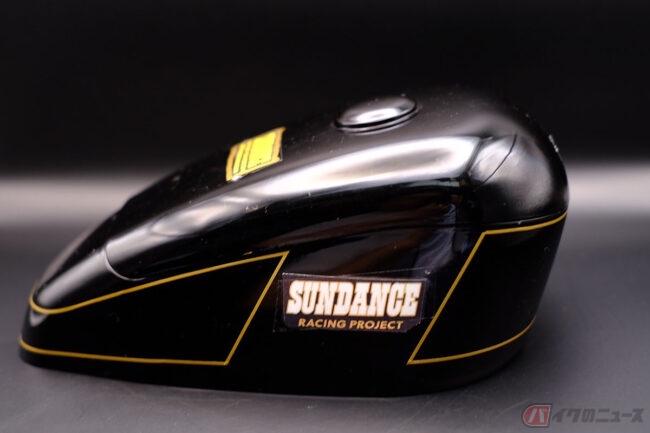 サンダンスとのコラボで発売された『バイク弁当』は、先ほど述べたとおりスポーツスタータンクをモチーフとしているのですが、カラーリングは先にも述べたとおりサンダンスのレーシングカラーであるブラック&ゴールドを採用。