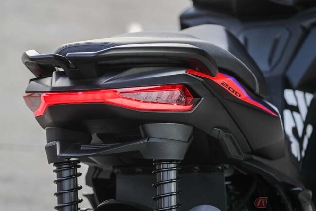 最高出力11kW/8,750rpm、最大トルク12Nm/6,500rpmを発揮する排気量125cc・i-getエンジンを搭載するSR GT 125と、最高出力13kW/8,500rpm、最大トルク16.5Nm/7,000rpmを発揮する排気量174ccエンジン搭載のSR GT200の2タイプが用意されたSR GTシリーズは、アクティブなライディングポジションとワイドなハンドルバーにより優れた操作性を実現しています。