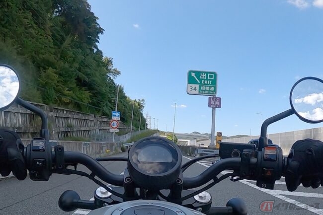 都内からスタートし、東名高速道路を使って相模原ICまで走行しました。今日は天気も良く、都内の最高気温は約26℃。前から吹いてくる風が冷たくもなく暑くもなく程よい感じでとても気持ちいいのです。このままずっと走っていたくなります。