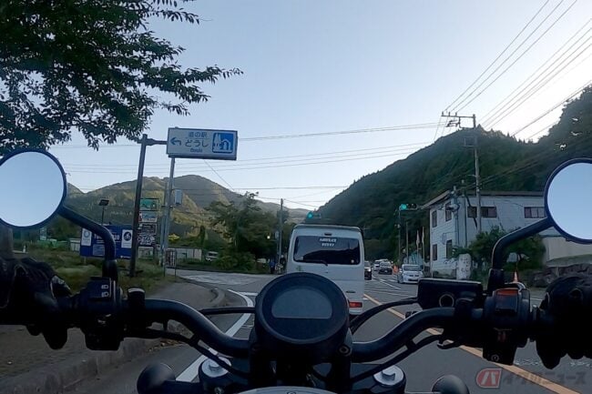 たしかに坂道はあれど、そんなに急坂じゃないのでワインディングが重なっても疲れにくいルートなんですよね。ただ、要所で道幅が狭くなる場所があるのでその際はより対向車の存在に目を配る必要があります。