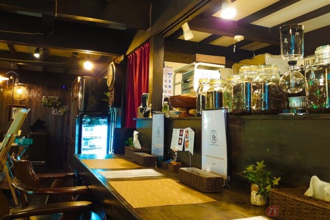 暖簾をくぐってガラガラっとレトロな扉音とともに入ると、店内はコーヒーと古い木造の香りが広がっていました。時間をかけて1杯ずつ丁寧に入れるので、立ち寄る際は待つ時間をのんびり楽しむことをオススメです。