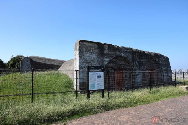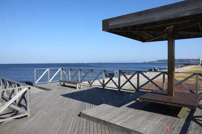 芝生広場のすぐ横には、かつて猿島と観音崎の中間にあった、第三海堡から移設した大型兵舎があります。海側には景色の良い展望デッキもあり、ここは海を見ながらデイキャンプやチェアリングをするのに良さそうな広い公園で、食後の昼寝にも最高な場所でした。